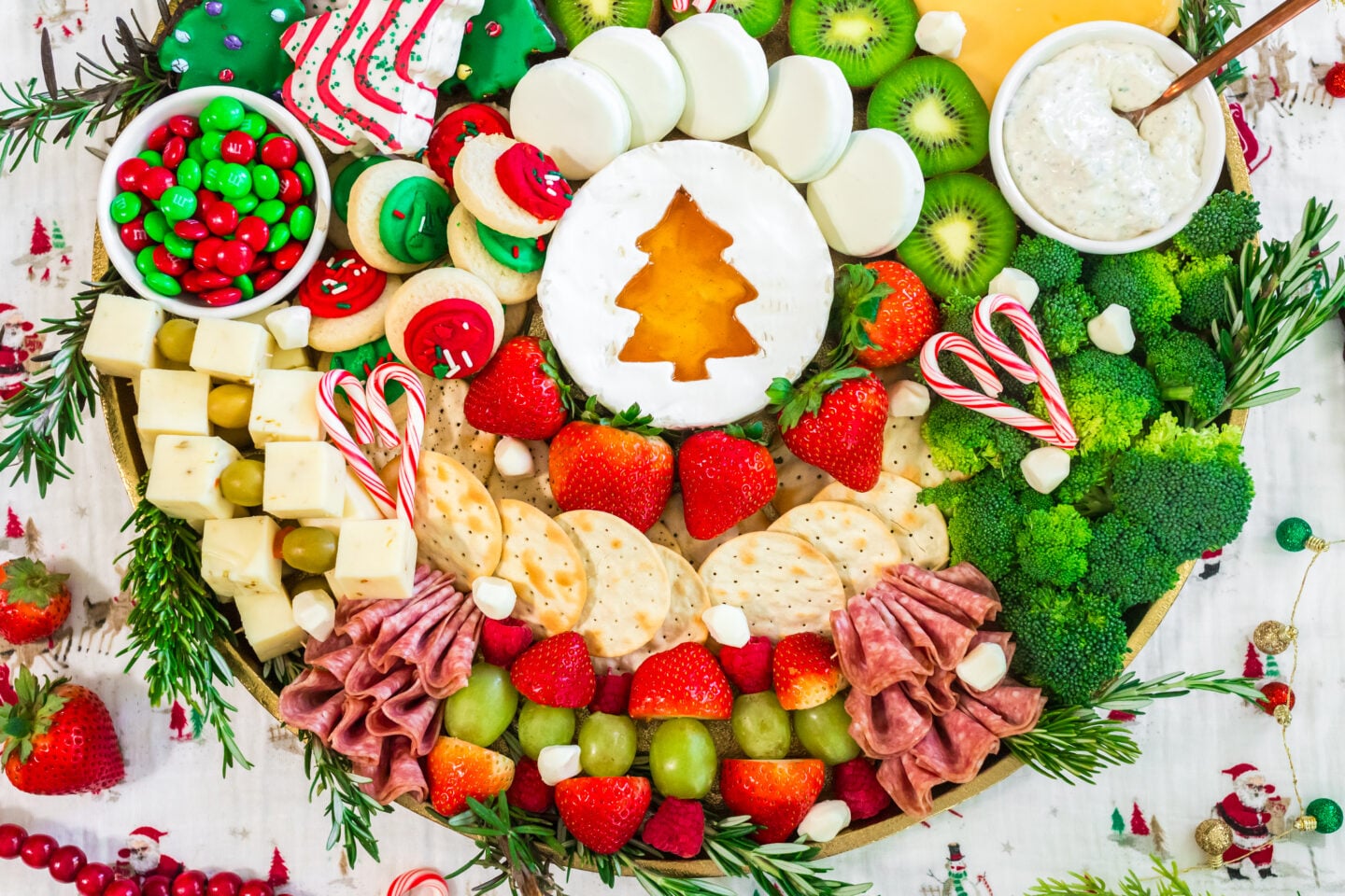 Designed to look like a holiday wreath, this Christmas Snack Board doubles as décor and food. Best of all? It comes together in about 20 minutes and can be customized based on what you have on hand.