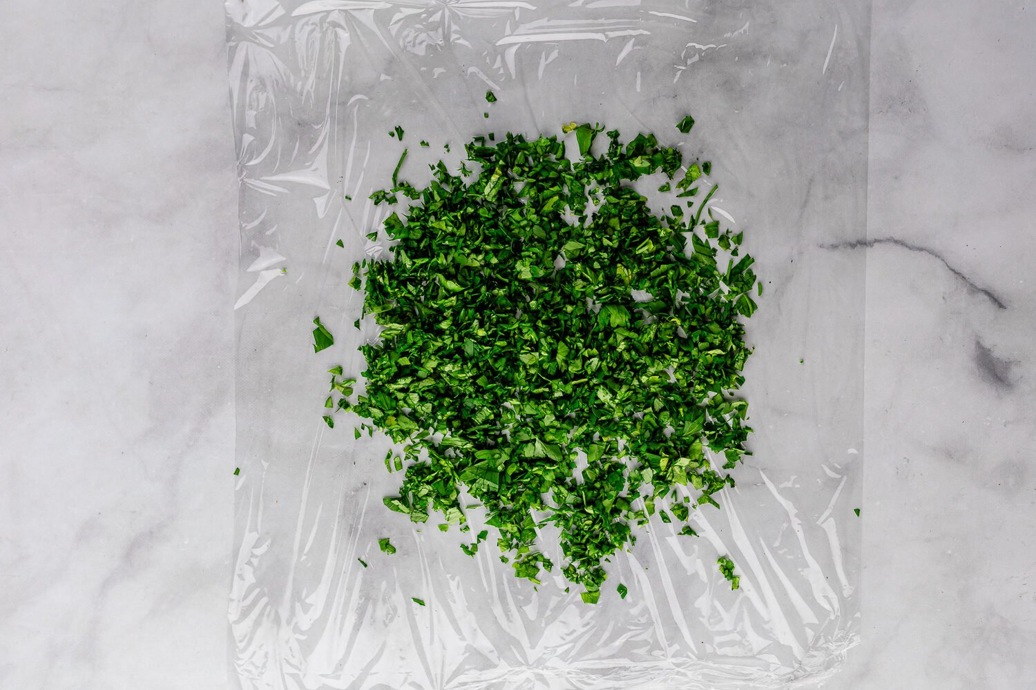- Pull the parsley leaves off and chop with a sharp knife until finely minced. You can also add it in your food processor and pulse a few times to chop quickly and finely.
