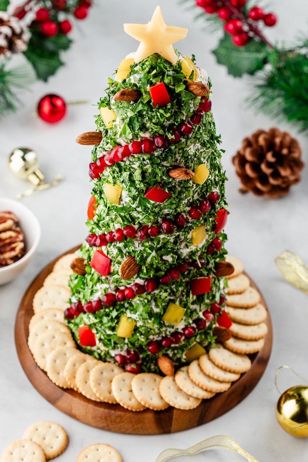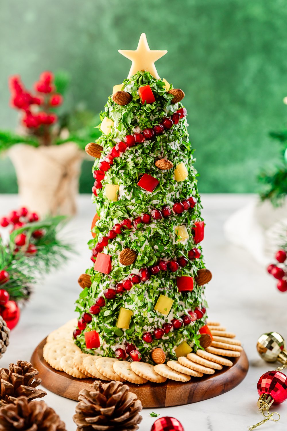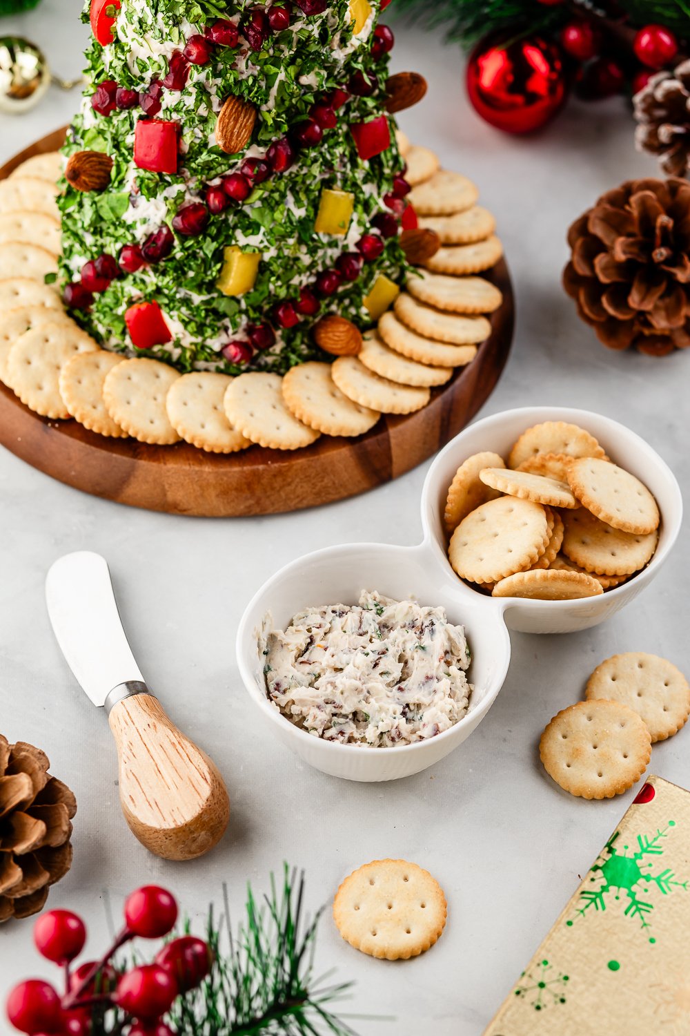 This turned out so cute! I’ve made a snowman cheese ball before, but hadn’t thought about a Christmas tree before this! Those flavors together are just perfect