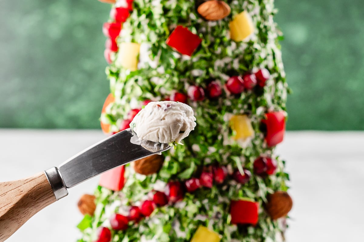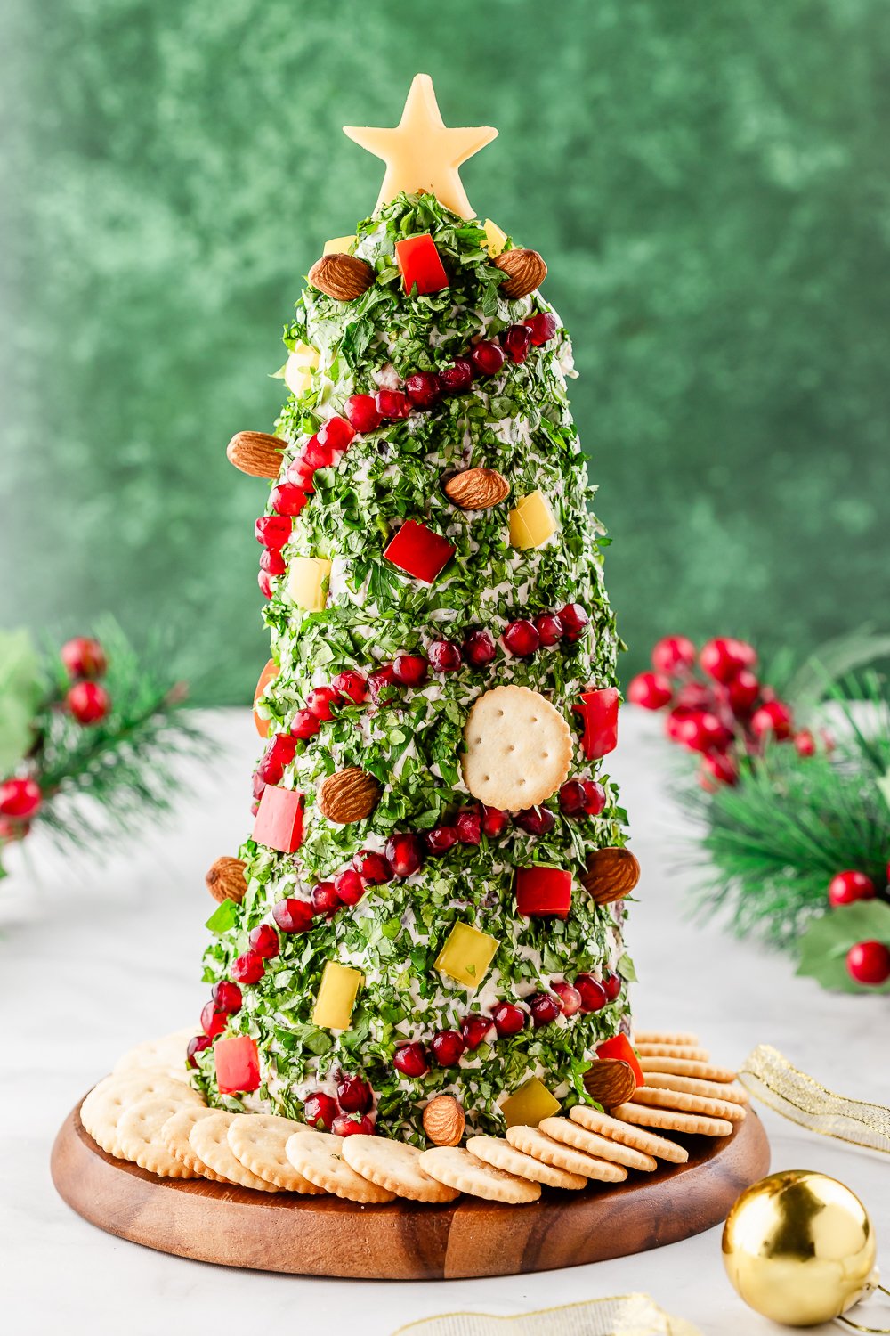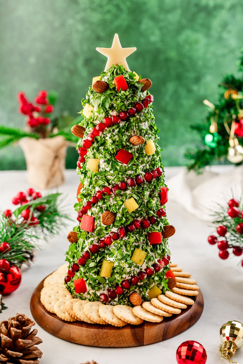 This turned out so cute! I’ve made a snowman cheese ball before, but hadn’t thought about a Christmas tree before this! Those flavors together are just perfect