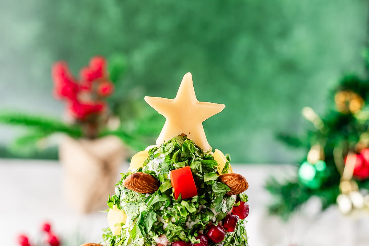 - Use your favorite food decorations to decorate your Christmas tree cheese ball.