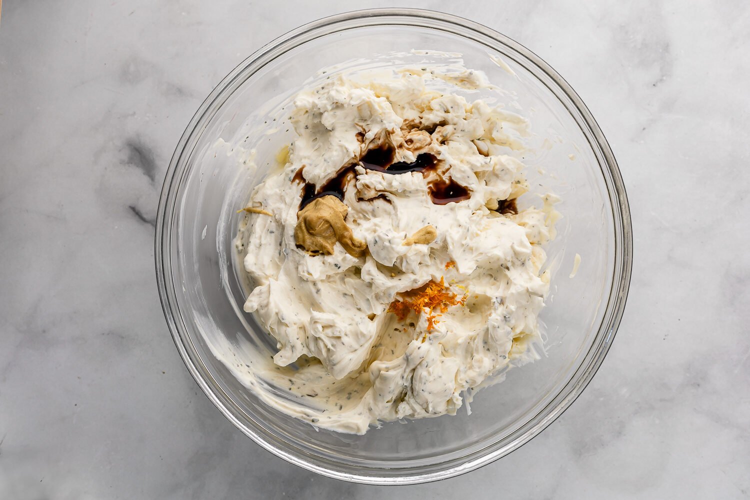 - Mix in the Worcestershire sauce, dijon mustard and orange zest.