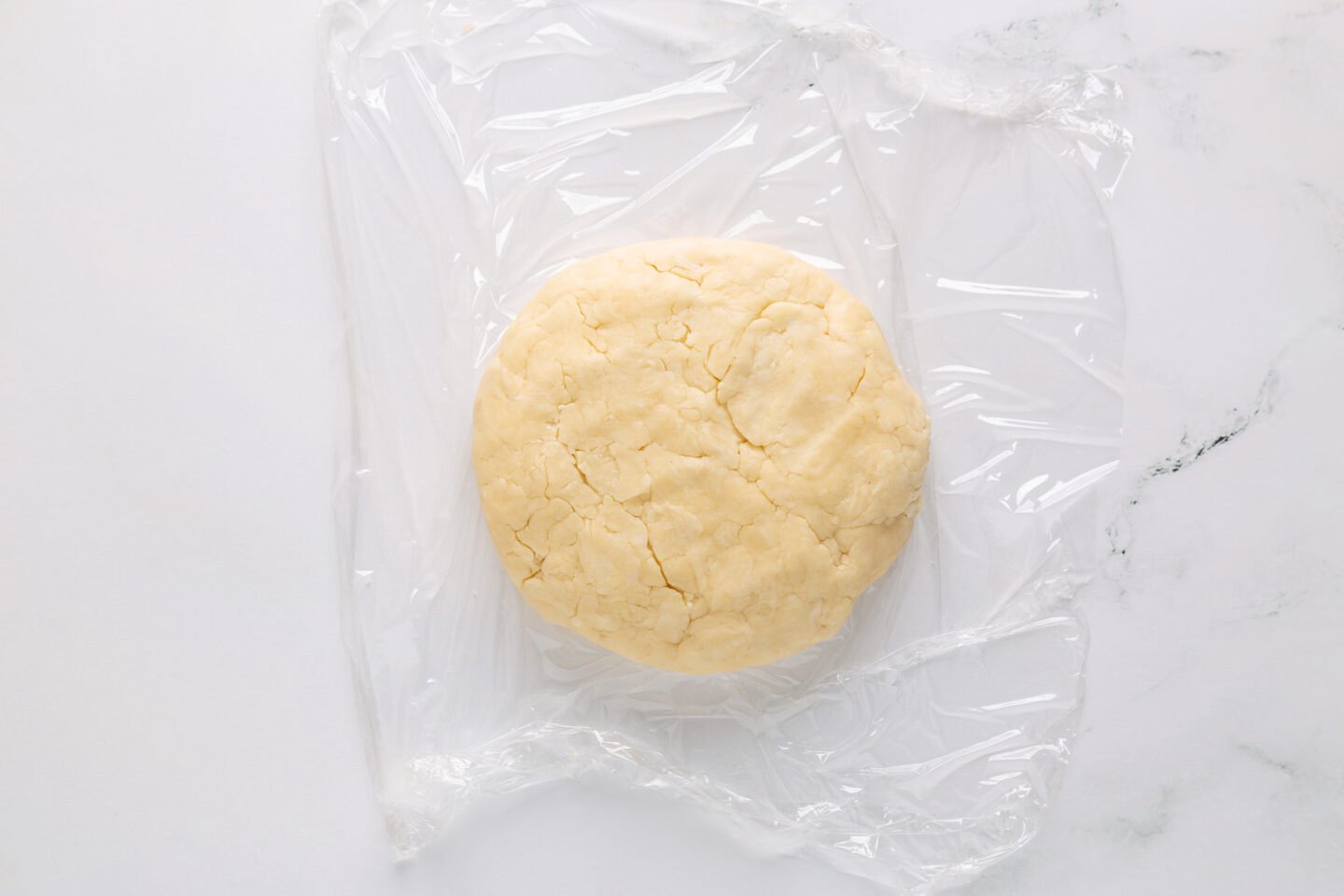 5. Shape the dough: Turn onto a floured surface, gather into a ball, then flatten into a disk. Do not knead.