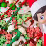 Make Elf on the Shelf Mischief Munch in just 20 minutes! A festive no-bake Christmas snack mix with cereal, popcorn, pretzels, candy, and holiday sprinkles.