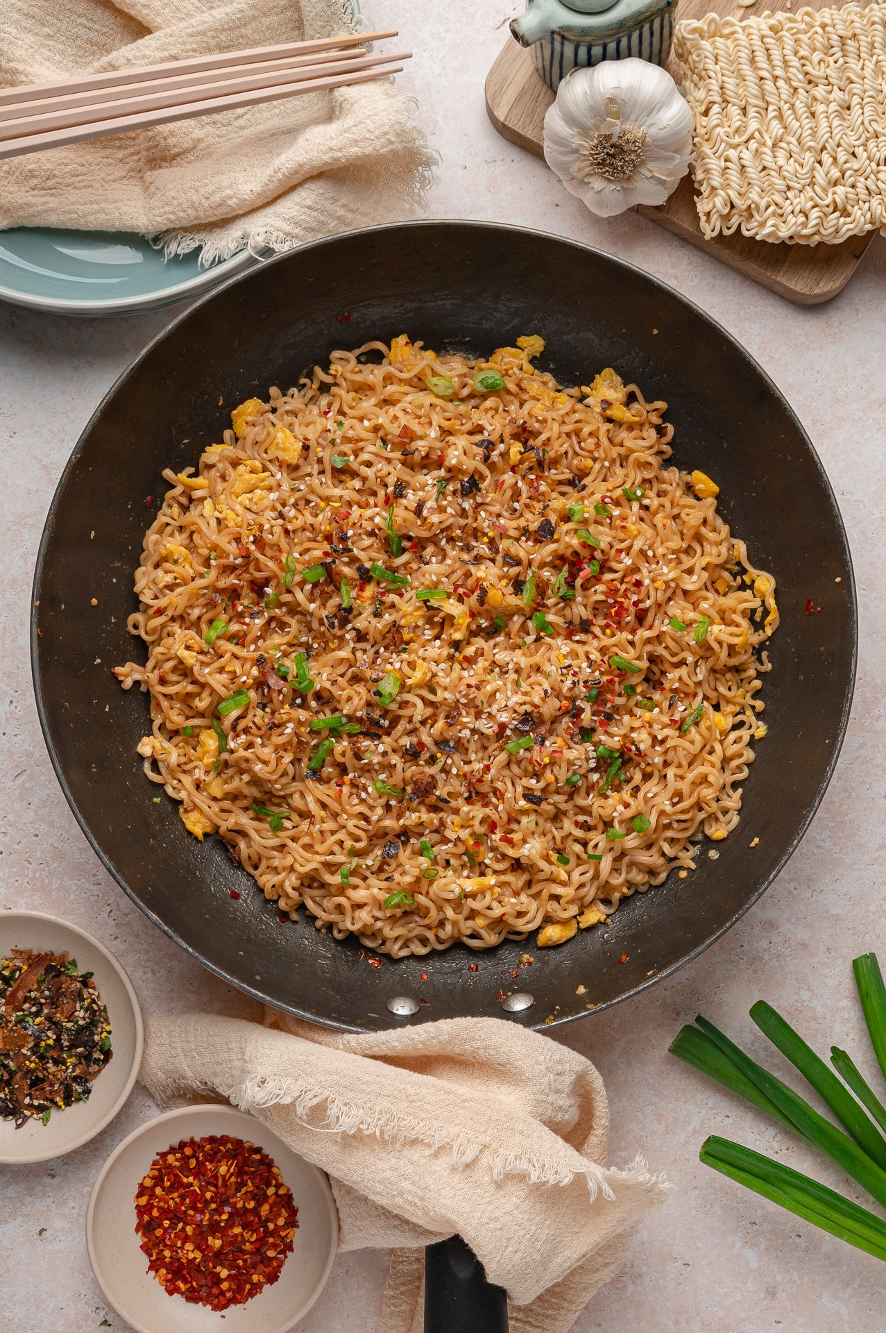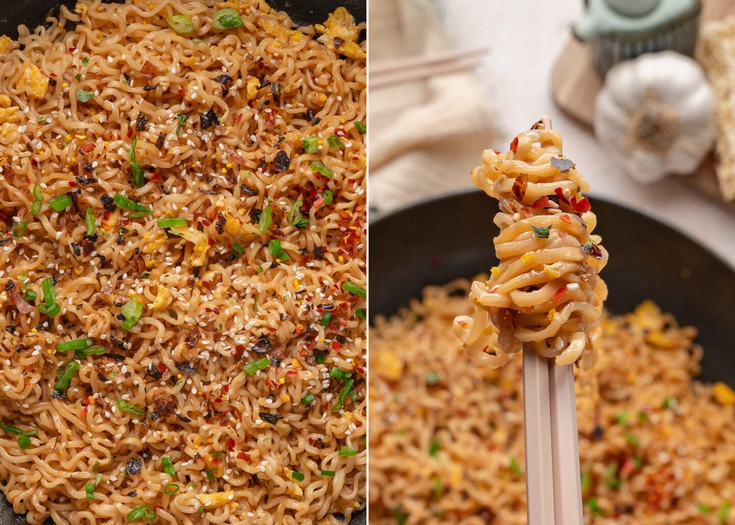 This simple combination creates the signature buttery garlic ramen noodles flavor that made this recipe go viral.