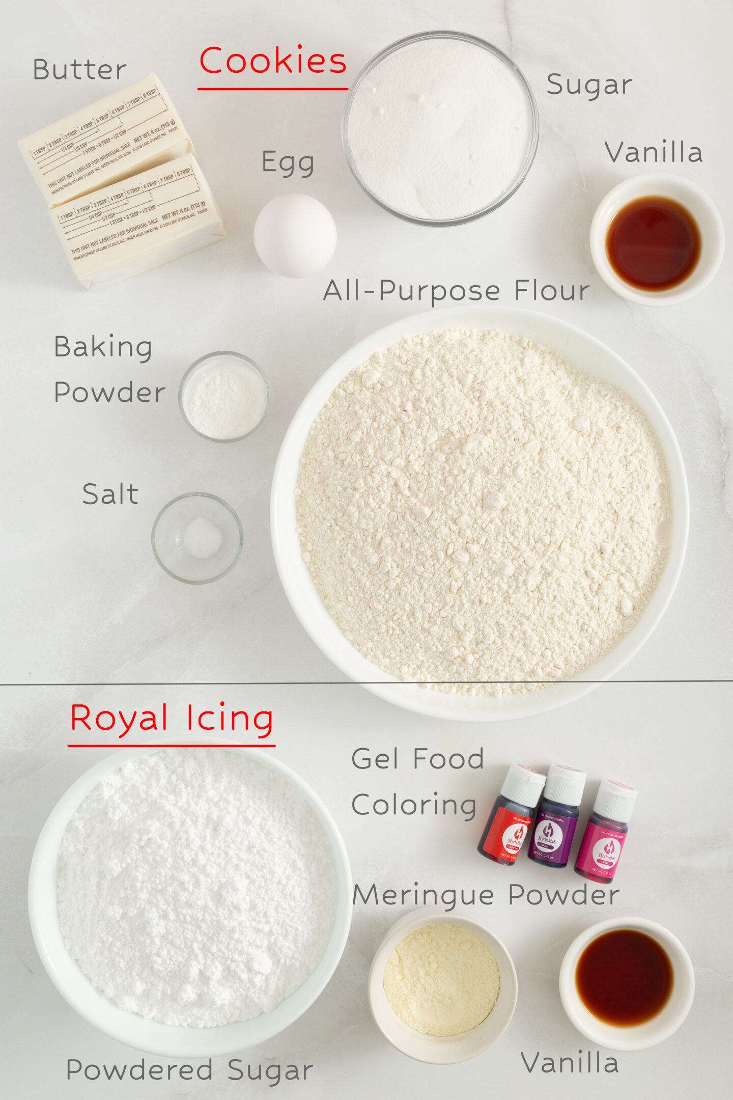 - Ingredients for Valentine Sugar Cut-Out Cookies